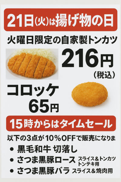 21日の火曜日も揚げ物の日を開催いたしまっすッ!!