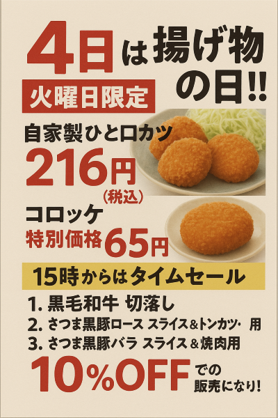 4日の火曜日も「揚物の日」を開催しますッ!!