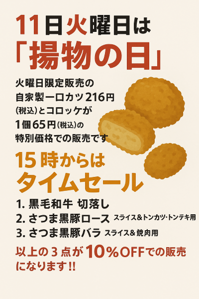 人気の惣菜コロッケも1個65円(税込)の特別価格になります。