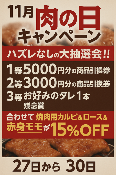 27日から「肉の日・大抽選会」を開催致しますッ!!