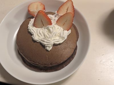 娘は胸を張ってココアパンケーキを振舞ってくれました。