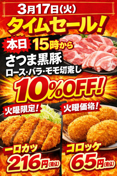 今週のタイムセールは「黒豚祭」を実施します(-ω-)/