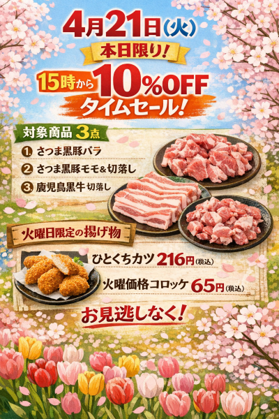 今週も21日(火)の15時からタイムセールを開催します(=゚ω゚)ノ