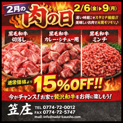 2月6日から9日まで「2月の肉の日キャンペーン」を実施します!!